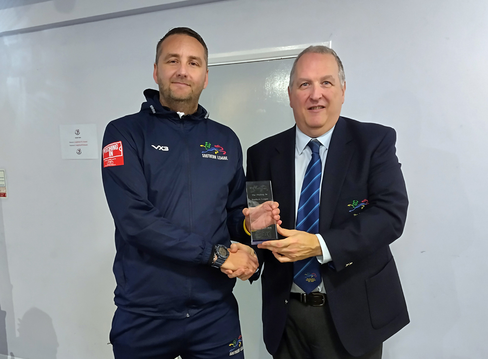 Southern League Chairman, David Martin, was on hand to make the presentation to manager, Paul Reed.